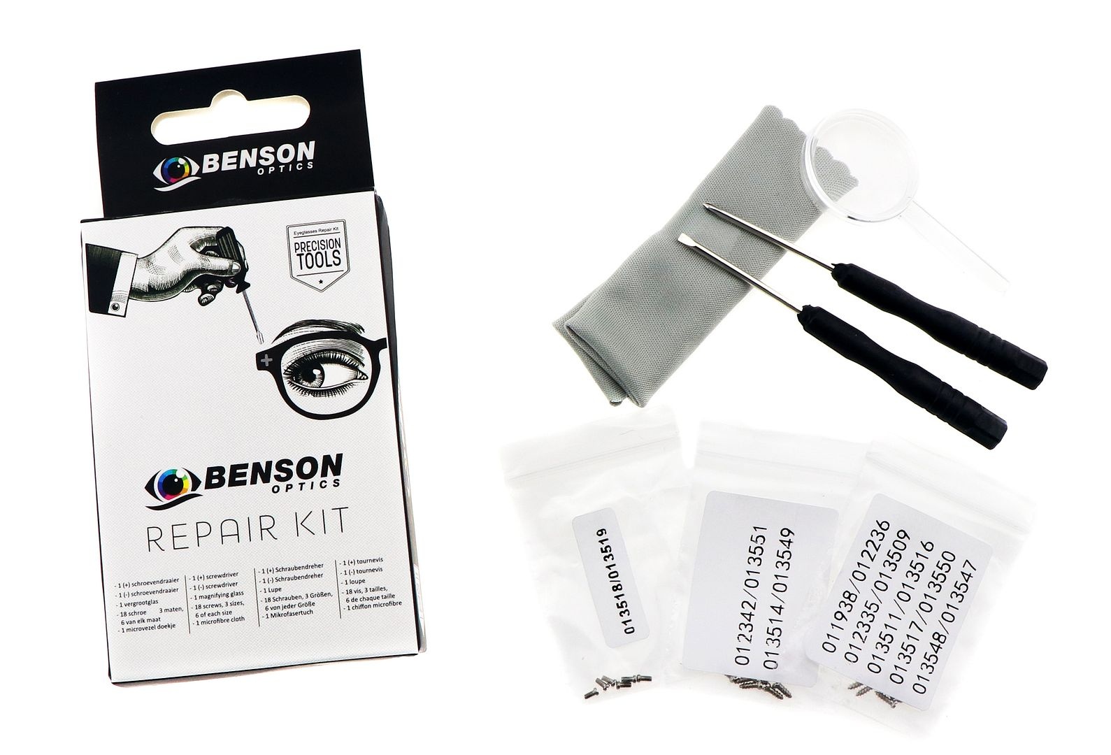 Niets is zo vervelend als een kapotte bril. Gelukkig hoef je met de bril reparatieset van Benson nooit lang met een kapotte bril rond te lopen. Met het meegeleverde vergrootglas en de 18 schroefjes in 3 verschillende maten heb je alles bij de hand om je bril snel en doeltreffend te repareren. De schroefjes zijn ook nog eens herbruikbaar, dus je kunt er keer op keer op vertrouwen dat je bril stevig in elkaar blijft zitten.